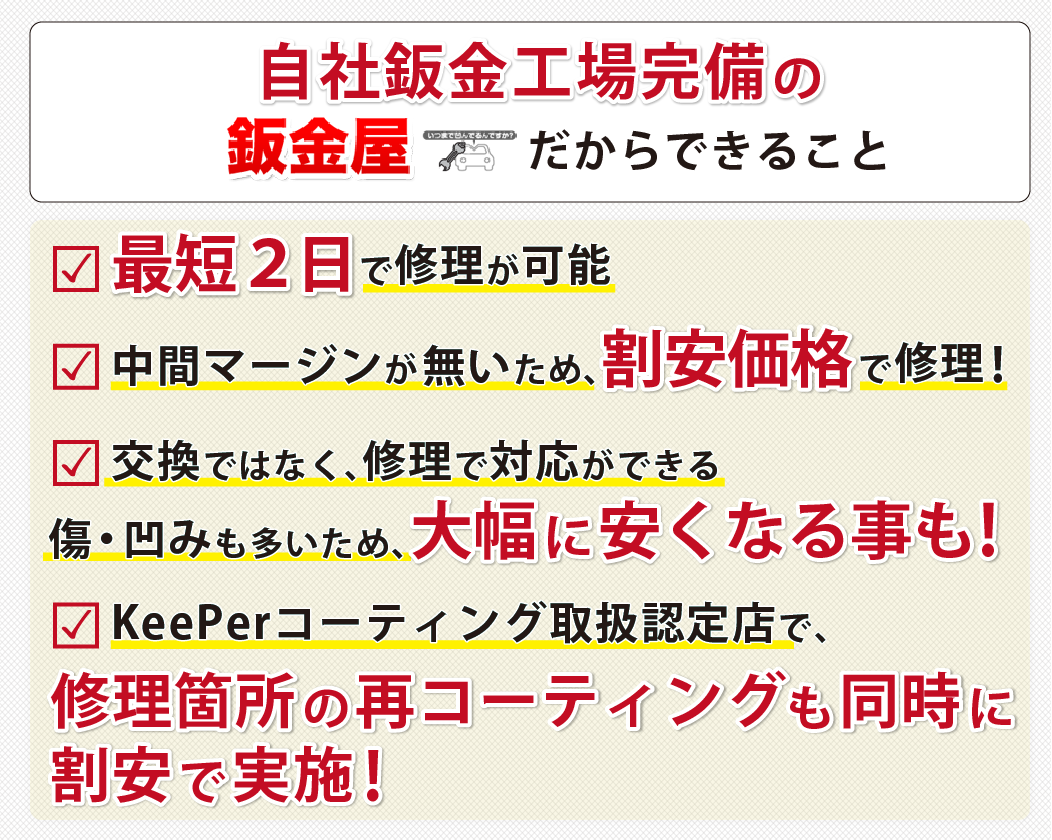 板金施工を実施するか決めて頂けますので、ご安心ください!